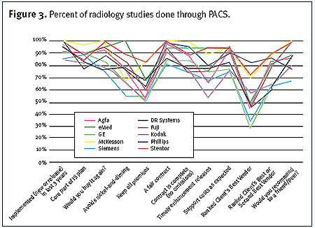 The result of this 2003 PACS study builds upon the success reported in 2002. Users are happy, vendor scores are up, products are more substantive and there is evidence that product use, in both depth and breadth, has increased, with more ROI being reported. Synergies continue to evolve in complementary venues such as cardiology and orthopedics, and the lines between PACS and RIS continue to show evidence of merging. The vision of one user provides "food for thought":