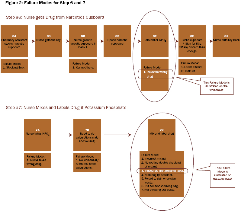 The CHR publicly disclosed the facts and initiated an external patient safety review. The Department of Critical Care Medicine (DCCM) also undertook a review of the process for ordering and administering intravenous, high-concentration KCl and KPO4, using the HFMEA tool developed by DeRosier, Joseph et al. (2002). The focus of this article is to describe the application of the tool with respect to reviewing the processes involved in ordering and administering intravenous, high-concentration KCl and KPO4, thereby allowing the DCCM to proactively identify hazards that may exist and establish a safer process.