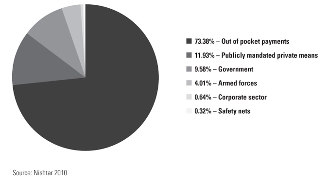 Healthcare embraces all the goods and services designed to promote health through promotive, curative and palliative care, whether directed to individuals or to populations. Providing a mix of services to a huge population is a challenge for most middle- and low-income countries with low budget allocations for health. Social and economic deprivation, compounded by issues such as gender, education, women's status, nutrition and sanitation, put immense pressure on the poor to seek medical care. Under such circumstances, the key milestones of a robust health system should encompass improving the health status of the population as well as cover the financial cost of treating illness. A well-functioning health system aims to lessen the financial burden on healthcare users (World Health Organization 2000). The widening coverage gap between rich and poor has decelerated the progress of health indicators under the Millennium Development Goals (MDGs). Communities must not experience financial hardship in accessing health services. To achieve this goal, the World Health Organization (WHO) also urged member states to modify healthcare financing systems within the sociocultural, macroeconomic and political context of the country and to develop sustainable financing mechanisms to manage their health systems (World health Organization 2000).