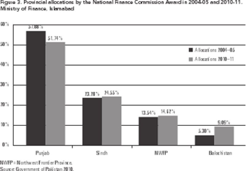 Figure 3. Provincial allocations by the National Finance Commission Award in 2004-05 and 2010-11.