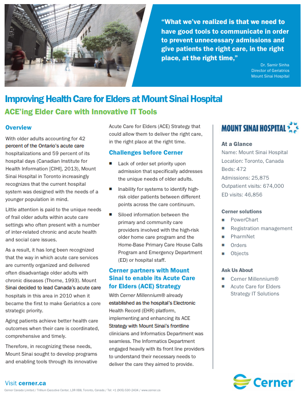 Mount Sinai Hospital saved $6.26 Million in 2012-2013 as a result of the implementation of the ACE Strategy.