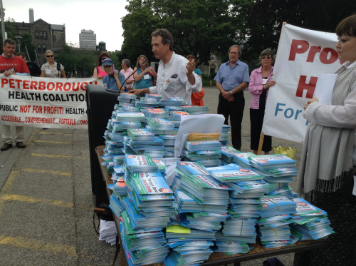 This spring the Ontario Health Coalition collected more than 80,000 postcards expressing opposition to the transfer of services from public hospitals to private clinics. Without any clear indication from government whether the competitions are on hold, the coalition is now working towards a November 21st mass rally in Toronto to push further on the issue.